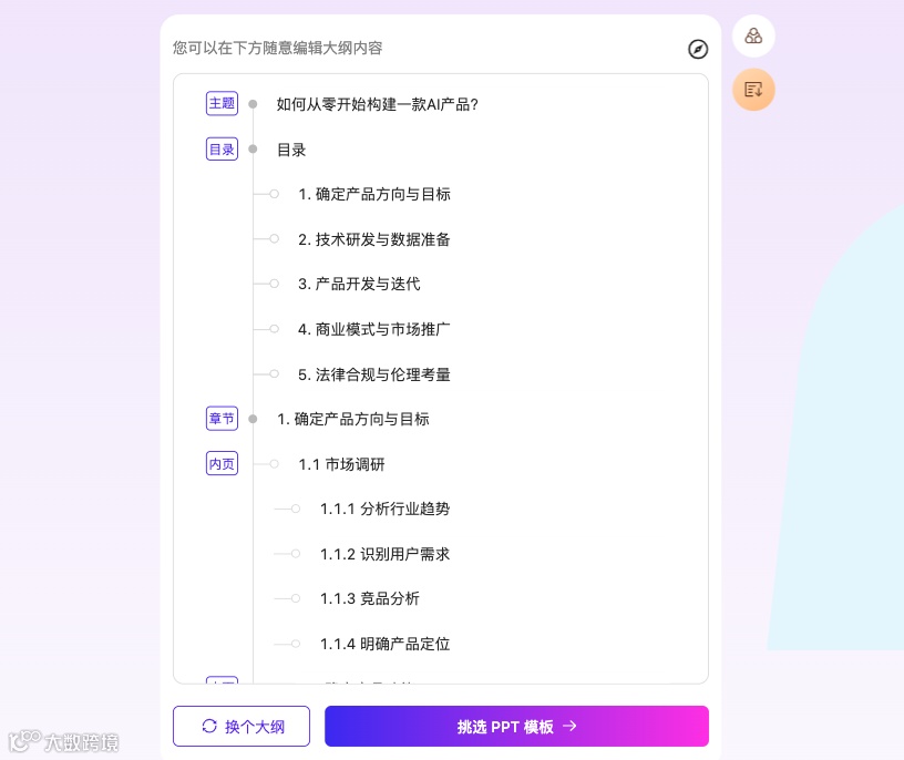 通过AiPPT智能生成的大纲非常详实,是我们用过的AI PPT产品里边的数一数二。
