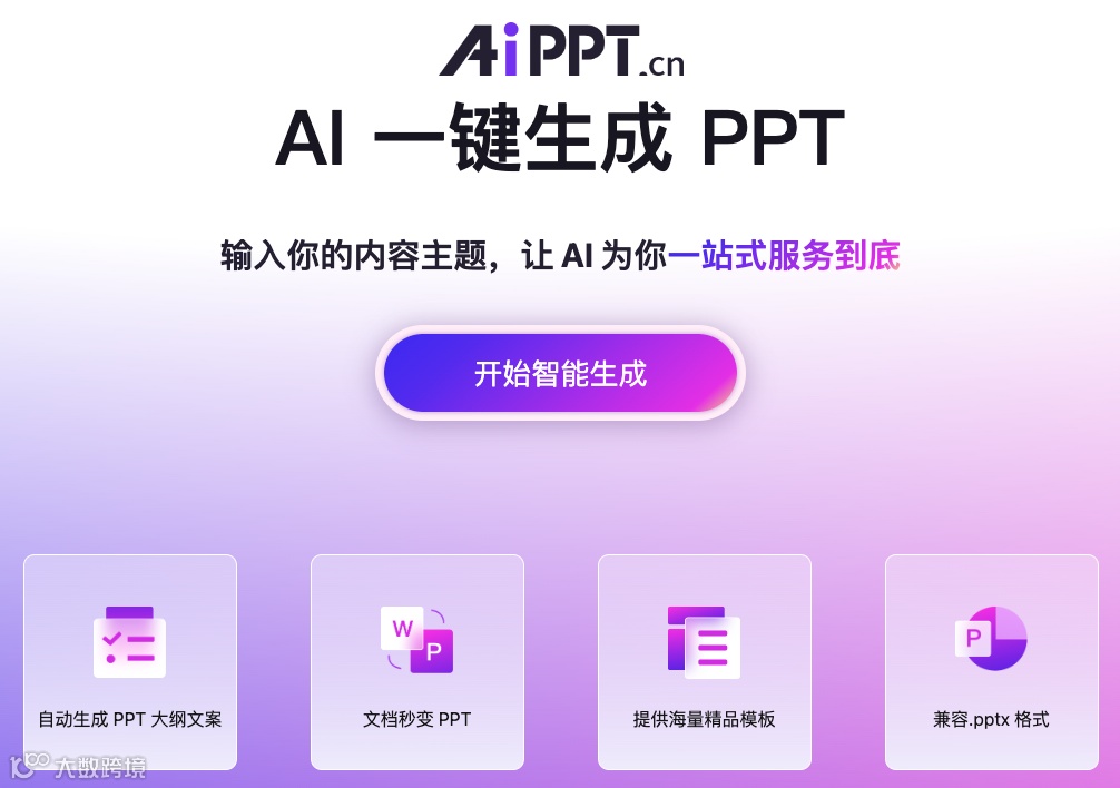 作为国内头部的AI PPT在线生成网站,AiPPT是面向垂直应用场景的PPT创作平台,正如它的Slogan所述「AI一键生成PPT」。