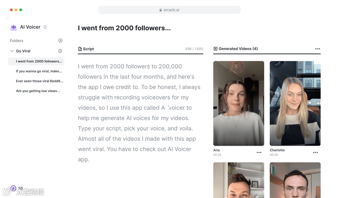 频极有可能基于一款名为「Arcads」的AI视频创作