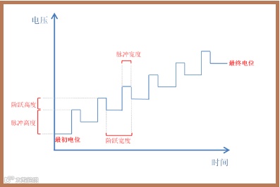 2、出现以下页面,设置最初电位、最终电位、脉冲高度、阶跃高度、脉冲时间和阶跃时间的数值,扫描速率为阶跃高度与阶跃时间的比值。同时选择合适的电流量程;