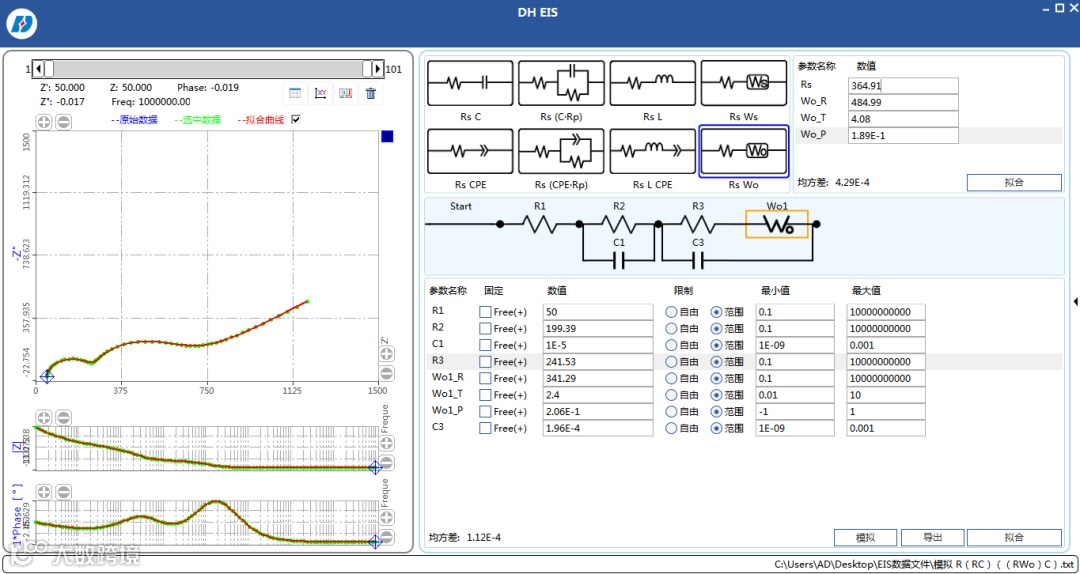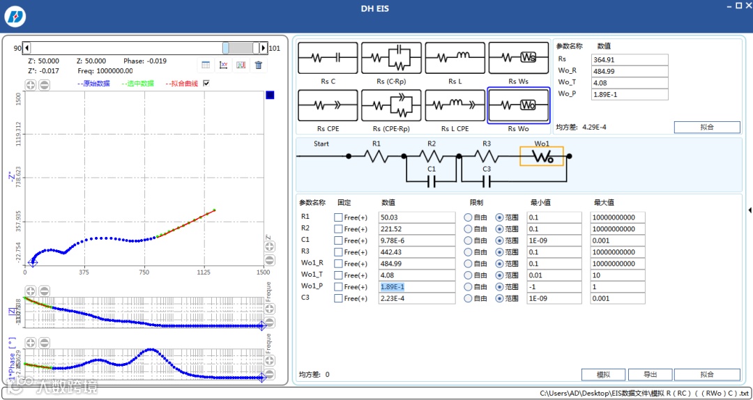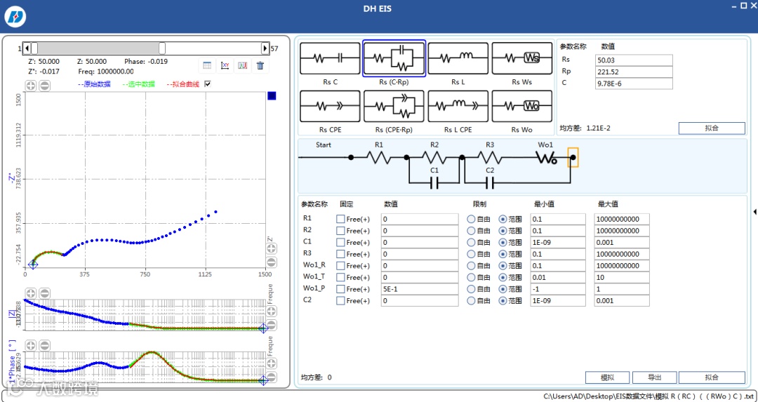 为配套东华分析的电化学工作站阻抗测试,给研究者提供数据分析的便利,我公司开发了阻抗分析软件DH EIS。