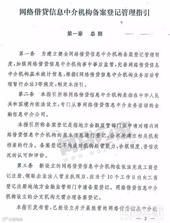 11月28日网传消息称,银监会联合工信部、工商局联合发布了《网络借贷信息中介备案登记管理指引》,为新注册及已经设立并开展经营的网贷平台备案登记给予指引。根据指引内容,有以下几点值得重点关注: