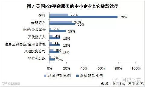 根据Nesta从英国中小企业贷款平台的3112个贷款交易的统计中发现,通过网贷获得资金绝大部分进入到了实体经济,仅有4%流入金融业。贷款排名前三位的行业分别是制造业、专业和商业服务业,以及零售业。此外,从金额上看,中小企业贷款的平均规模为7.32万英镑,有抵押贷款的平均贷款规模为66.2万英镑,帮助了中小企业解决小额融资困难。