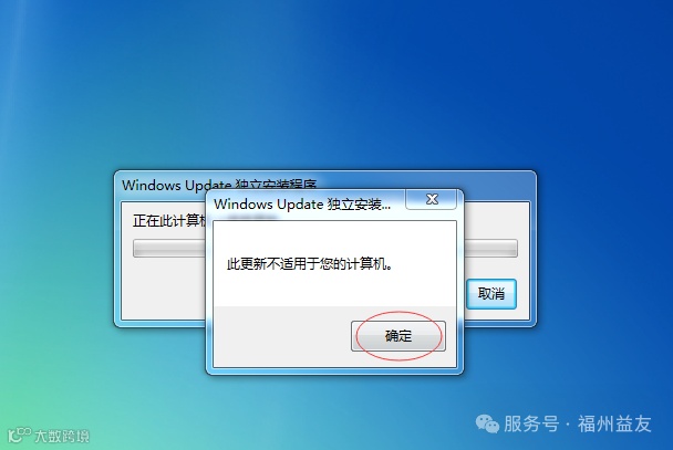 如上图是正常的,点击确定就可以了.我的计算机是一种情况,还有另外一种情况是,有补丁包出来,如果是其他的点击我接受,确定 安装 等等 就是肯定的前进.然后就进入计算机重启状态了,记住这个地方千万不要自己去点电脑重启 一般点确定,计算机会过一会 会自动重启的.