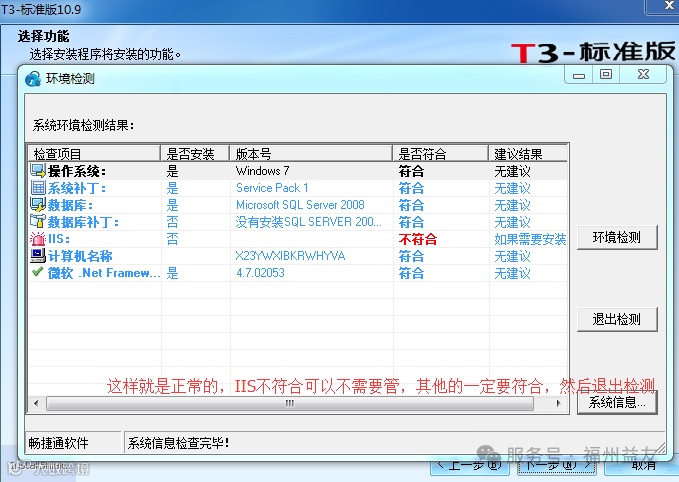 点击更改,最好改成全英文的,首位不能为符合或数字,名字中不能有符号!然后修改好了,点击确定,电脑会立即重启.xp也是一样的,仔细看 我的电脑 右键---属性中描述 就很容易找到修改计算机名称 ,修改好 然后回来再点环境检测就会发现通过了. iis不符合是可以不需要管的.