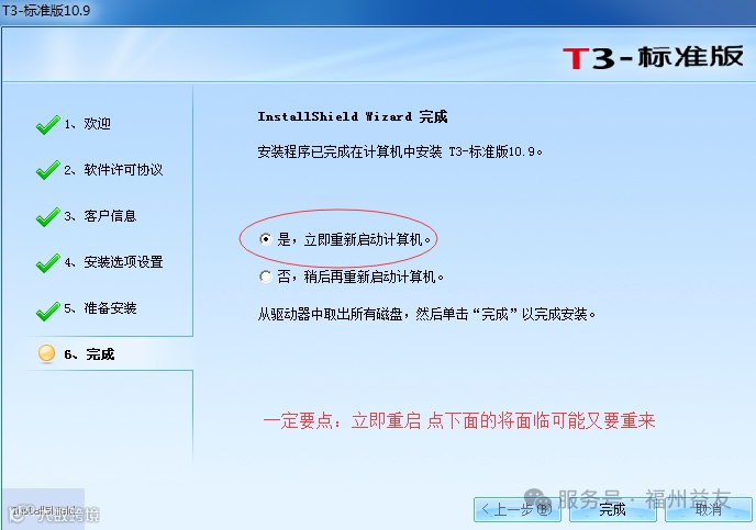 10.如下图,一定要点:立即重启.千万不要点 稍后呀.不然又要卸载了重装.