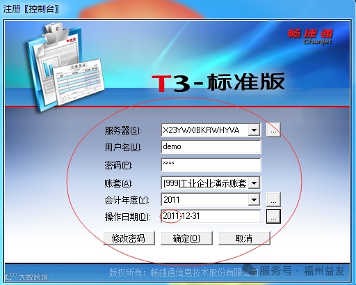 用户名:demo 秘密:demo 选择帐套:2011 操作日期是:2011-12-31
