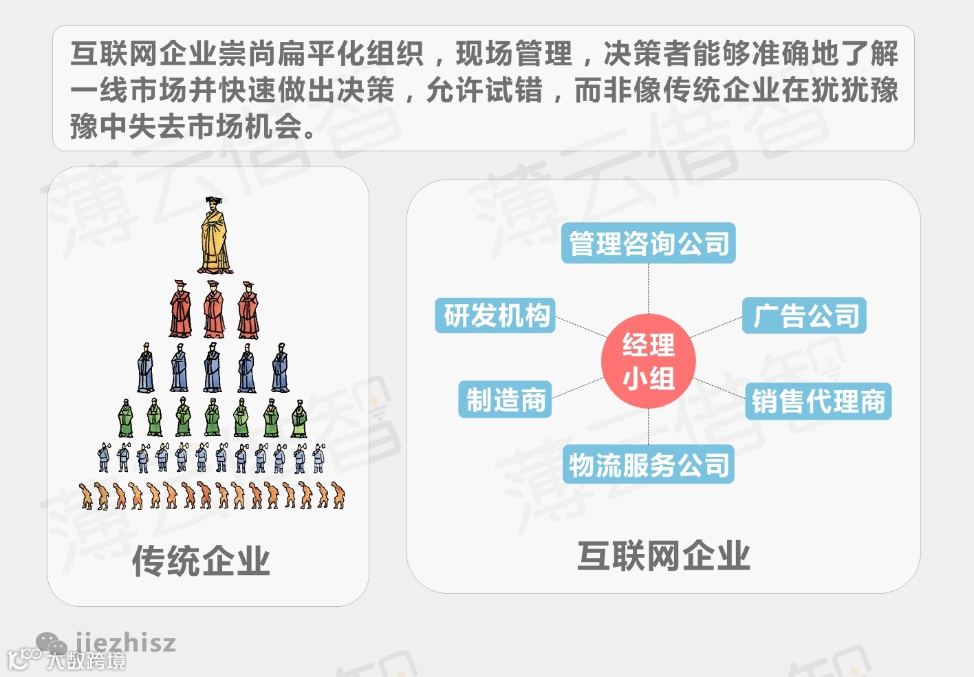 前面10张图,解读了互联网企业与传统企业思维的本质区别。大家都能感受到传统企业向互联网企业转型已是大势所趋,那么传统企业拥抱互联网都有哪些相同路径?下面的10张图将理论与案例结合,或许会给我们带来一些启发。