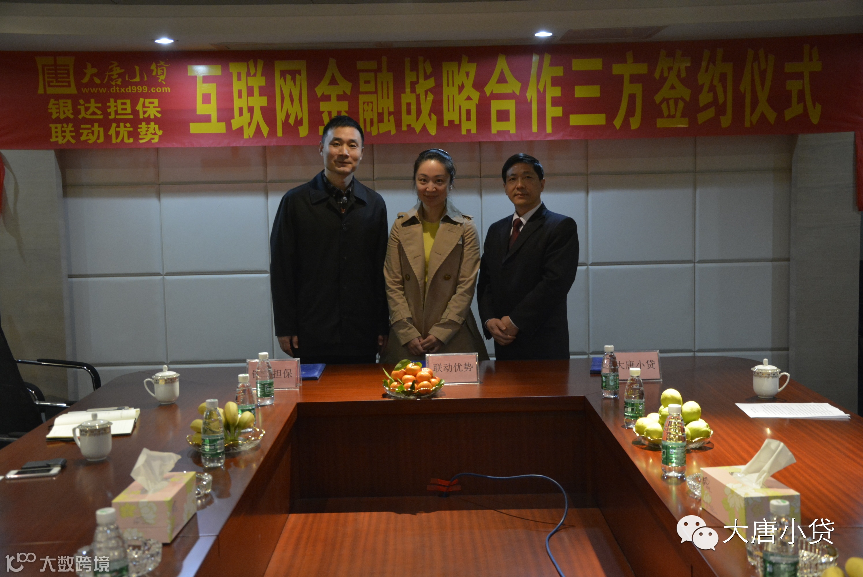2015年1月7日上午11:00,广州顺心贷信息技术有限公司(简称“大唐小贷”)、广东银达融资担保投资集团有限公司(简称“银达担保”)和联动优势电子商务有限公司(简称“联动优势”)在广州市海珠区银业国际大厦三楼就互联网金融战略合作举行了简单而隆重的签约仪式!大唐小贷总经理李忠勇先生、银达担保集团常务副总裁李百健先生、联动优势华南区域总经理脱欣女士出席了签约仪式并交流了2015年互联网金融的创新与发展趋势。