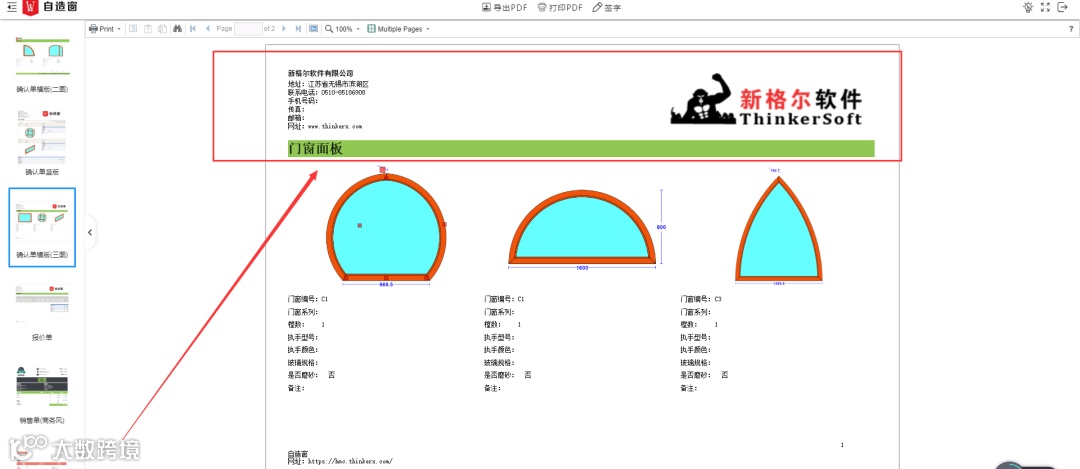 增加:公司logo、公司信息、玻璃规格、是否磨砂、颜色、执手类型、执手颜色、订单金额等