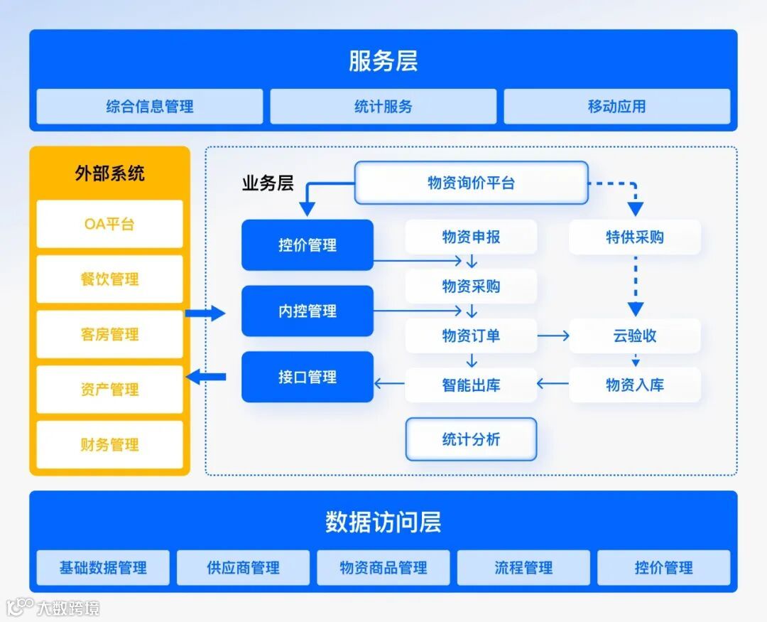 以人工智能、大数据等技术为核心,该平台旨在建立一站式后勤管理系统。打通采购、食堂、仓库等不同后勤管理项目的信息茧房,建立全模块的业务监管。