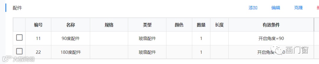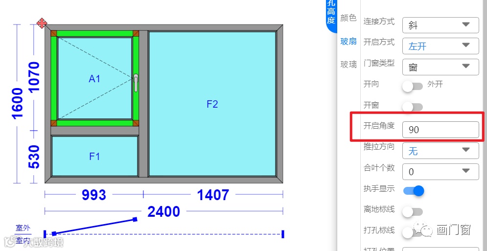 3、平开扇增加最大开启角度设置,扇配件可引用”开启角度”变量