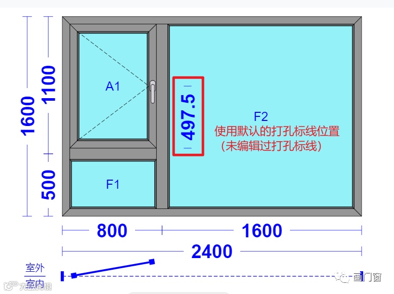 4、显示等分扇横中梃标线,且算料后标线值更新为实际中梃位置