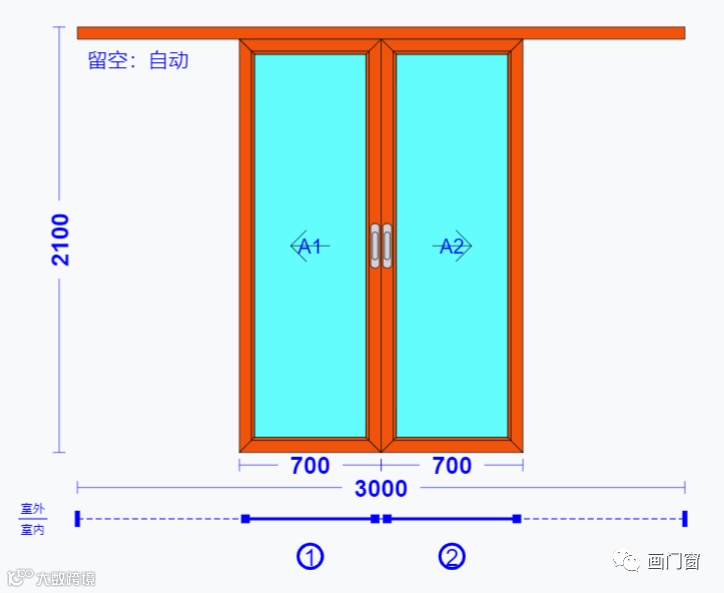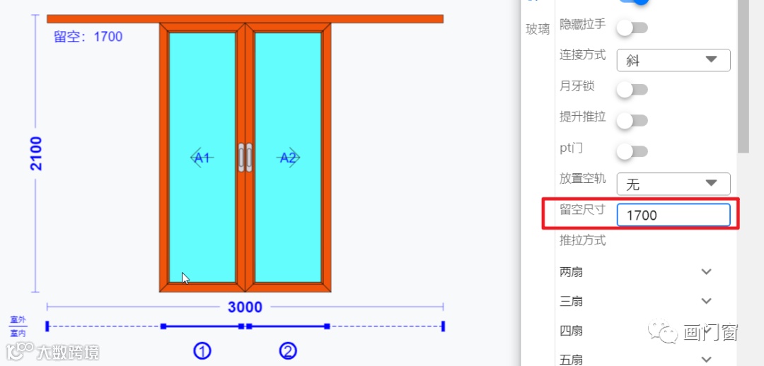 2、支持单轨推拉留空尺寸设置,或指定多扇固定宽