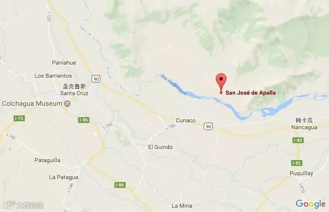 不过经过我后来翻墙谷歌,仔细考证发现。这老外还真没乱吹。我们要知道,兰佩谷首先可以分为两大区——空加瓜谷(Colchagua )和卡恰布谷(Cachapoal),前者的名气要比后者更大,风格也更多,气候温暖非常适合佳美娜的生长、如蒙特斯等诸多智利名庄都在其中,而阿帕尔塔产区(Apalta )就是空加瓜谷中的一个非常小的山谷(真的很小。目测面积可能和东部华侨城差不多。),它也是智利公认的最佳佳美娜产区!没有之一!VSJA就坐落于此!可见它的佳美娜质量是非常有保障的。