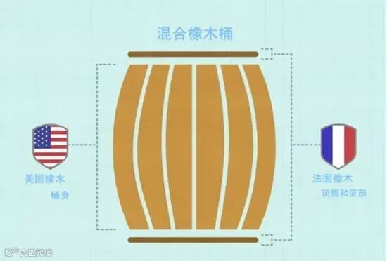 混合橡木桶,通常桶身使用美国橡木,桶顶和桶底则采用法国橡木。这样一结合,美国橡木和法国橡木在一定程度上可以相互平衡,优势互补。法式优雅与美式浓郁的碰撞,带给葡萄酒美妙而和谐的香气和风味,同时也可在一定程度上降低葡萄酒的酿造成本。