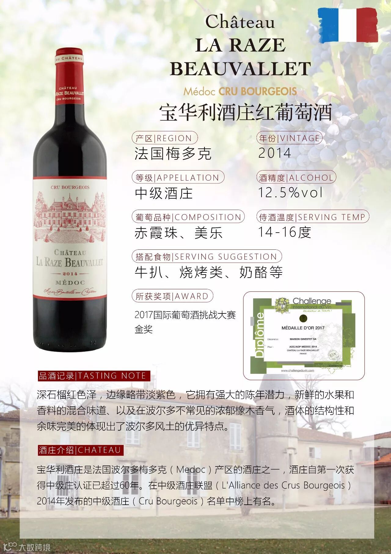 宝华利60年前便获得中级庄认证,在2009年新制度修订后,至今连续八年入选中级庄名单。