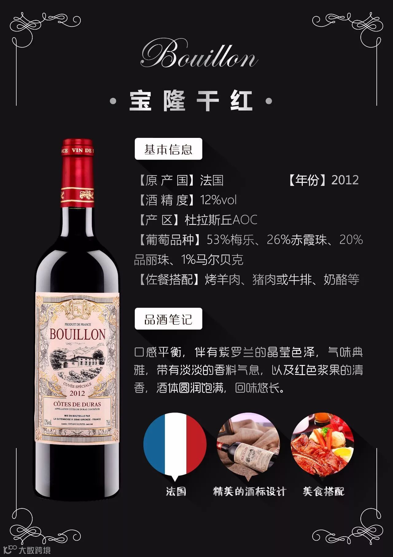 它是西南产区中波尔多风格的一面,非常靠近波尔多的两海之间,常常被误认为是波尔多的小产区,风土相似、葡萄比例相似。相对波尔多拥有价格优势,但品质却也非常惊喜!