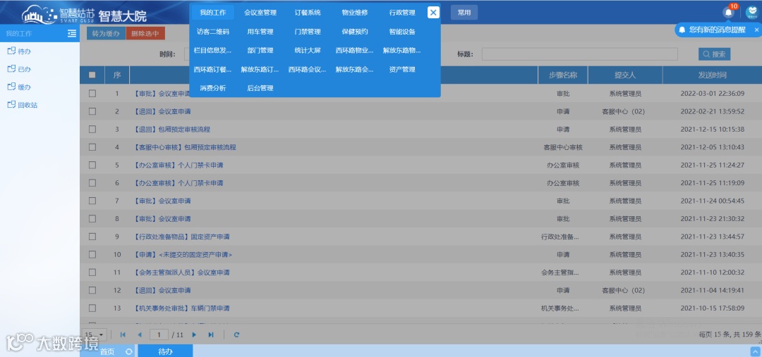 后勤保障资源利用效率低、统筹管理难、会议室使用撞档……直面机关大院管理的痛点,姑苏区机关事务管理局携手新点软件开展机关事务标准化、数字化、智慧化建设,深化管理体制改革,提高服务创新能力,推进机关事务治理体系和治理能力现代化发展。