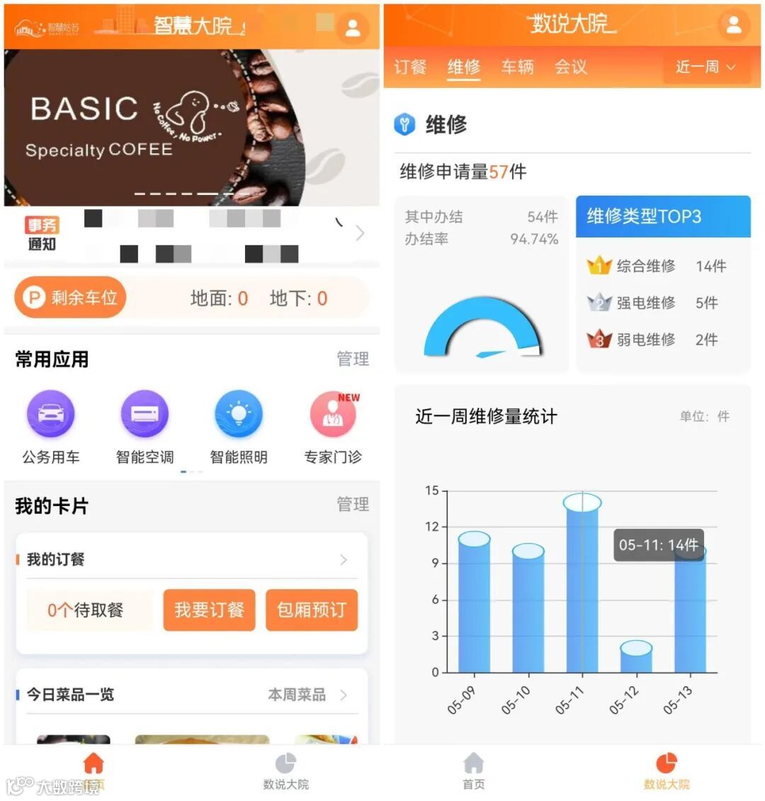 姑苏区的机关工作人员在不同大院时,APP可自动定位大院并提供对应大院的服务:停车时,可在APP一键查看当前政府内剩余车位情况,实时获取车位余量,节约上班停车时间;用餐时,可在APP一览菜品菜单,自由选择喜爱菜品并下单,就餐时只需扫码取餐,减少排队时间,实现快捷高效用餐;设备报修时,手机随时可拍照上报需要维修的设备,实时获取维修动态以及维修进程......在姑苏区智慧大院中,机关事务运行机制全面升级、后勤服务场景更加多元化、服务体验更加智能化。