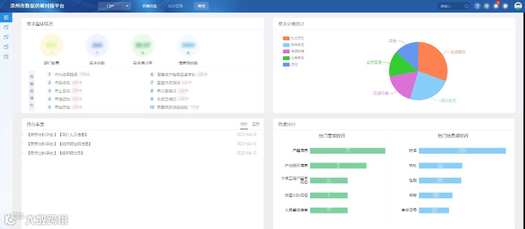 深挖数据潜能,赋能数字经济发展。滨州市依托数据治理、供需对接、综合查询三大系统,从“理”“采”“存”“管”“用”五个维度出发,对海量数据进行采集和整合,构建各类政务数据在共享、服务、应用层面的数据质量保障体系,解决了数据资源不可知、数据质量不可控、数据关系不可联、数据脉络不清晰等痛点问题。