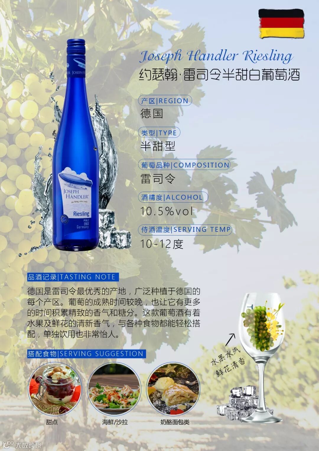 不过,酒单上的葡萄酒种类较多,不同的葡萄品种、产区、等级也让人眼花缭乱。如果你想跳过这些恼人的葡萄酒体系,可以尝试来自德国的雷司令白葡萄酒等。