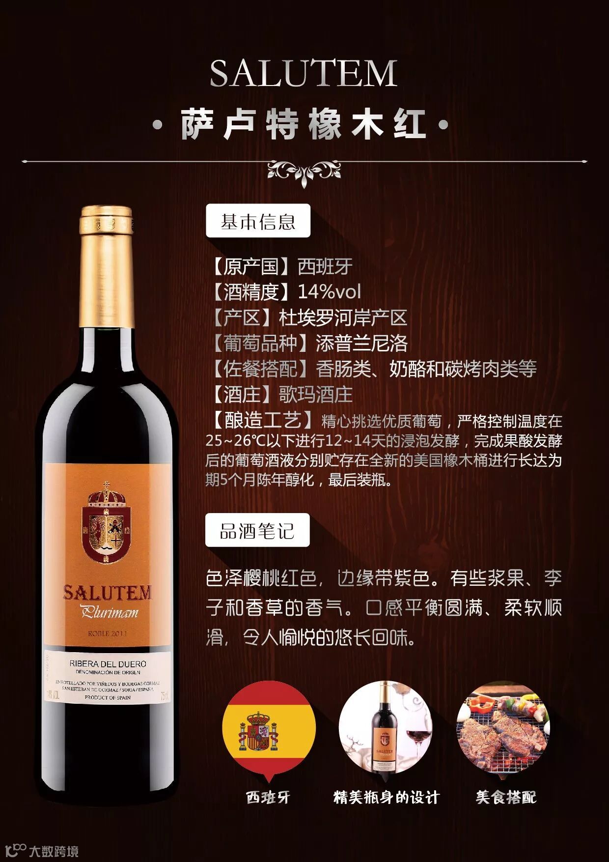 “萨卢特(Salutem)”来源于拉丁语,表示祝福的意思,在现代英语中表示致敬,西班牙人在干杯时也都会一起高呼“Salud!”,意预“健康!”。从酒名上它就是一款非常适合年会庆祝的酒款,其来自西班牙最优秀的产区——杜埃罗河岸,足够浓郁的酒体和橡木香气让其口感表现非常出色