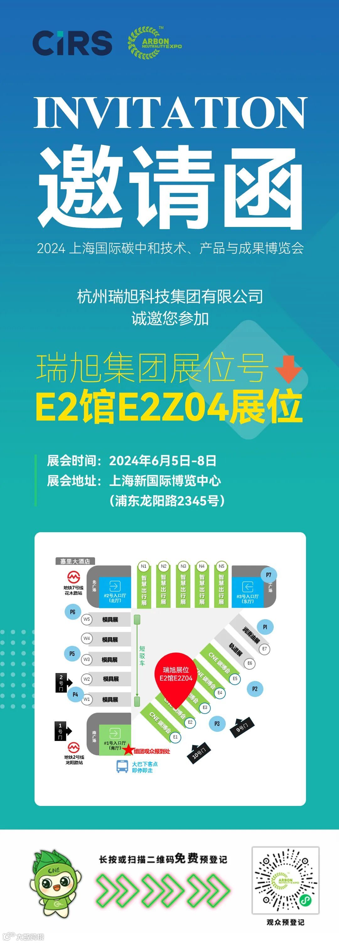 2024上海国际碳中和技术、产品与成果博览会(以下简称“上海国际碳中和博览会”)将于6月5日-8日在上海新国际博览中心(浦东龙阳路2345号)举办。瑞旭集团在E2馆E2Z04展位等候您的光临!