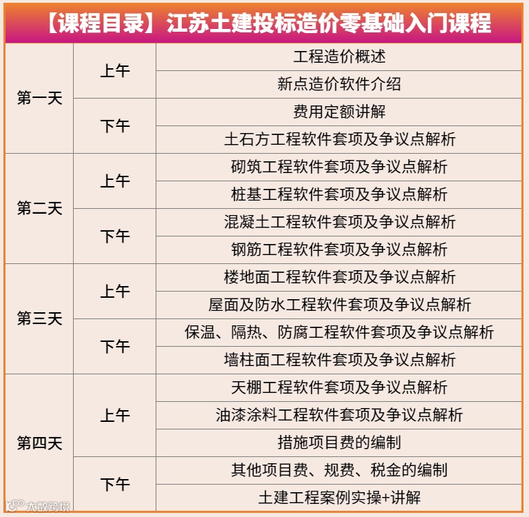 1、掌握市政工程造价基础知识,熟悉工程造价整个过程、计价方法和计价依据。