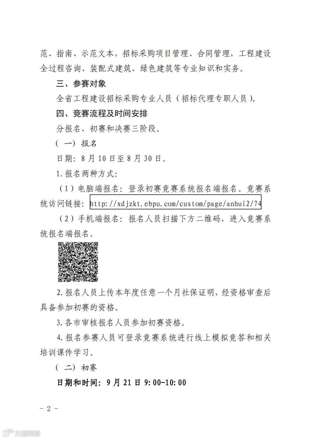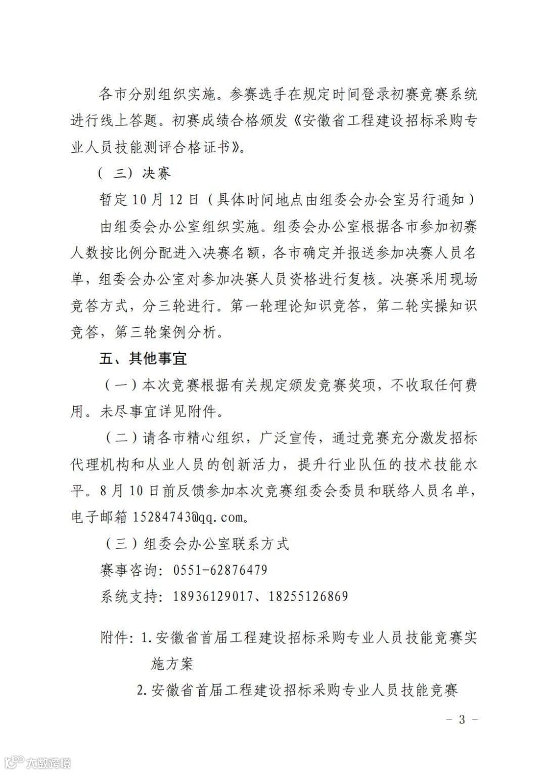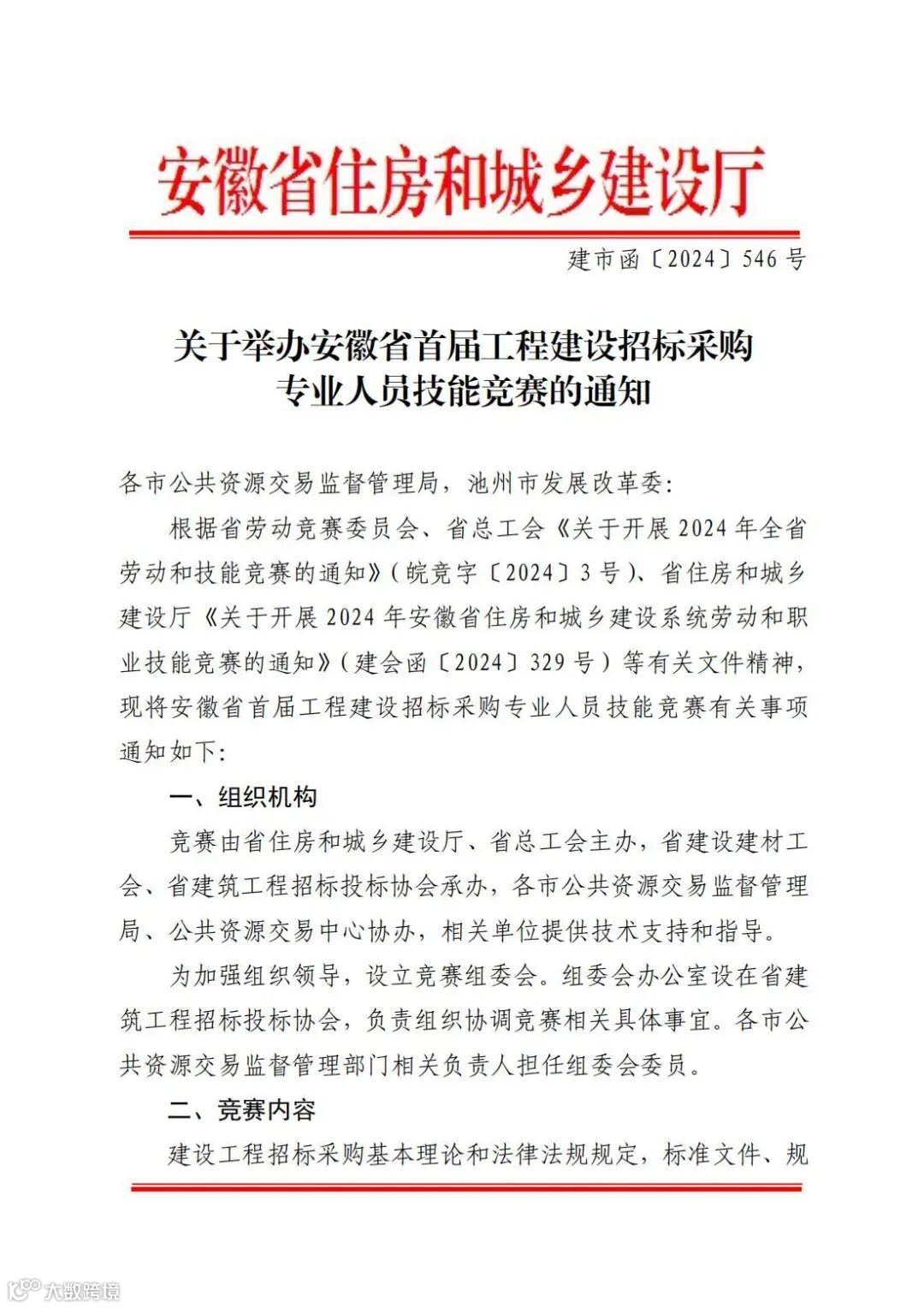 1.安徽省首届工程建设招标采购专业人员技能竞赛实施方案
