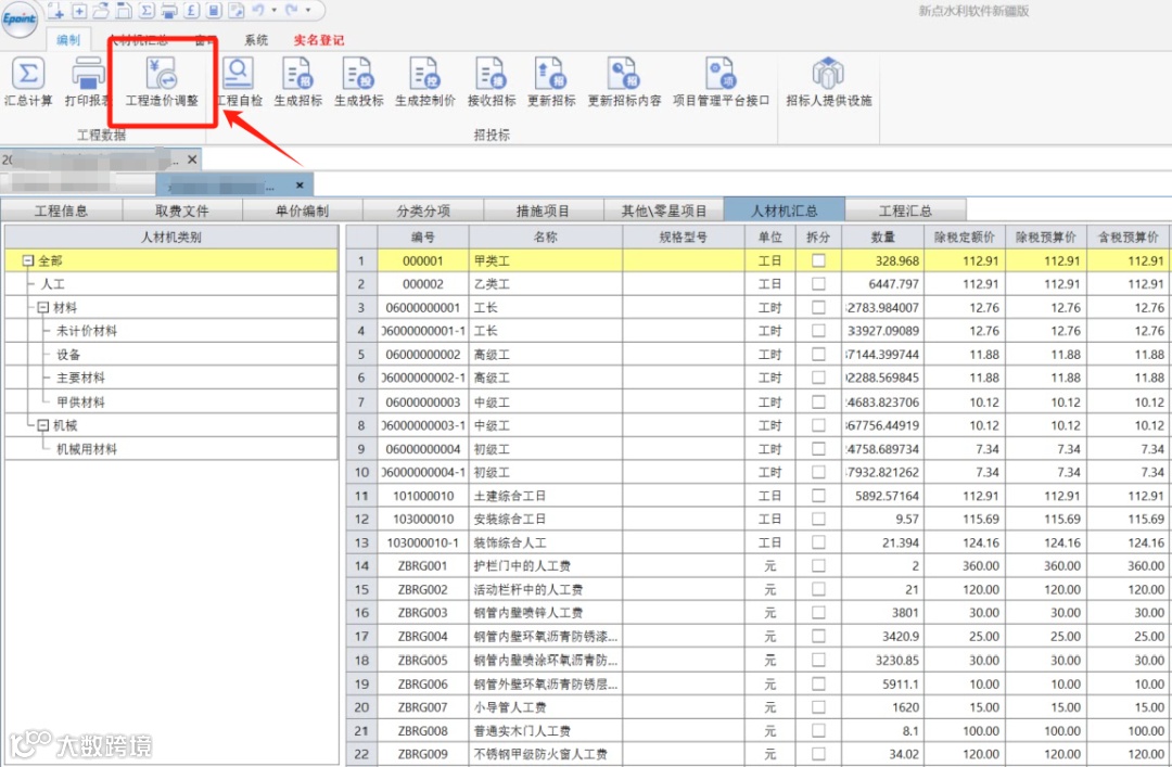 点开单项工程,在菜单栏中点击【工程造价调整】功能。