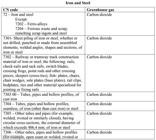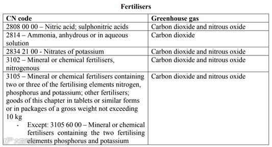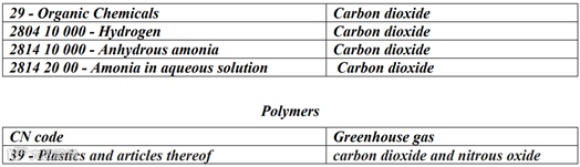 以下为提案附件I 第一阶段将要实施的行业中产品及对应需核算的温室气体列表,供参考。