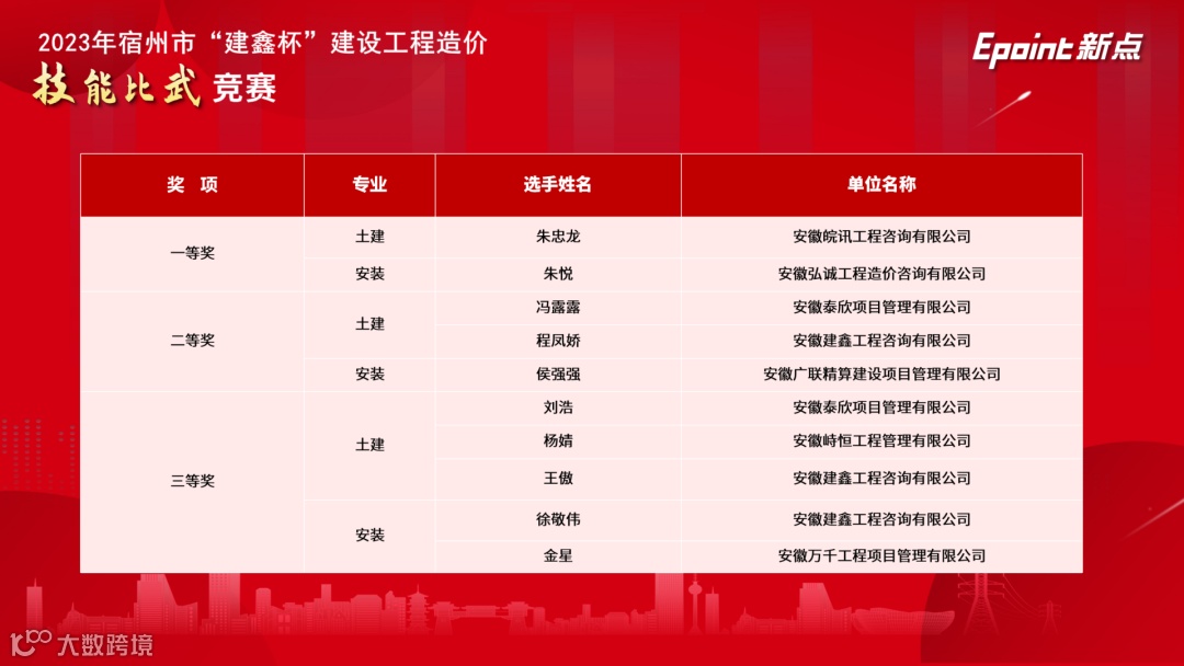 作为安徽省造价竞赛年,建设工程造价技能竞赛正在省内各地井喷。本次竞赛是宿州市工程造价行业的一次“大练兵”,是践行新时代工匠精神的一次“大比武”,也是对从业人员技能素质、知识积累的一次多角度、全方位的“大检阅”,将更好地赋能工程造价行业及宿州市建筑业市场高质量发展。新点软件也将以此次大赛为契机,深度推动数字技术与行业信息化需求融合,助力工程造价行业高质量发展。