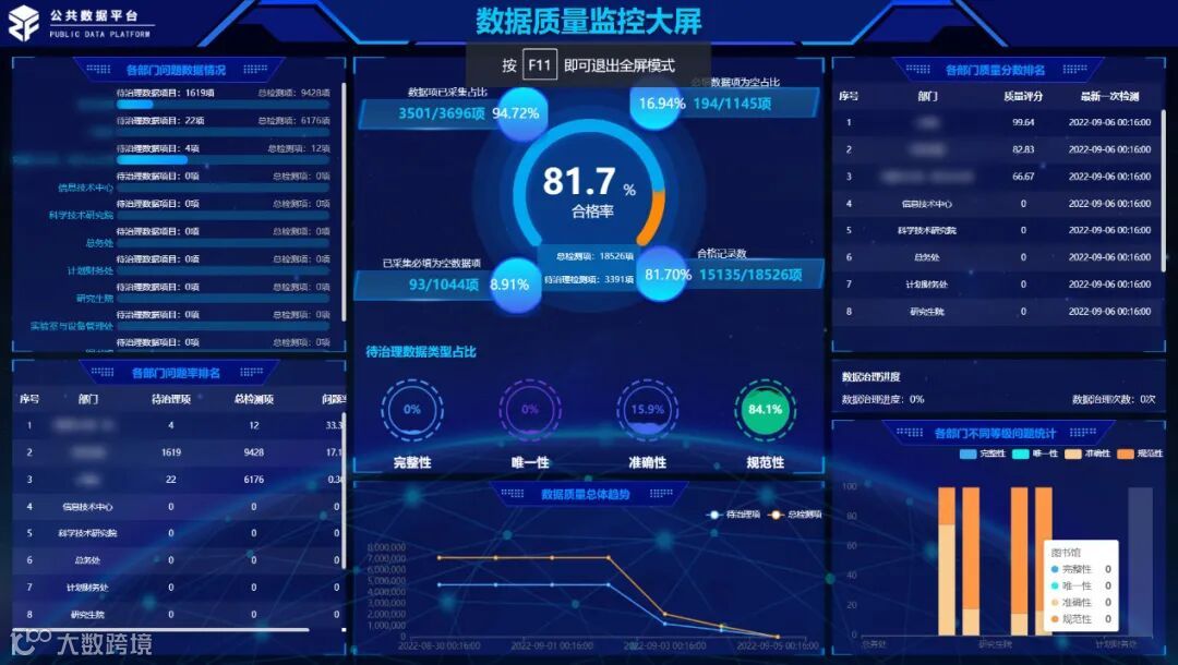 在建立数据资源目录1.0版本(数据标准)的基础上,通过“全流程一体化的数据治理与数据服务”平台的质量管理体系,建立检测模型137个,依托业务需求,持续不断地对数据进行检测、修订改进,提升整体数据的“质和量”。