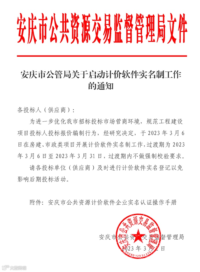 根据芜湖市、安庆市公共资源交易监督管理局发布的《关于启动计价软件实名制工作的通知》文件要求,新点清单造价软件V10.0安徽版第一时间进行了软件更新。