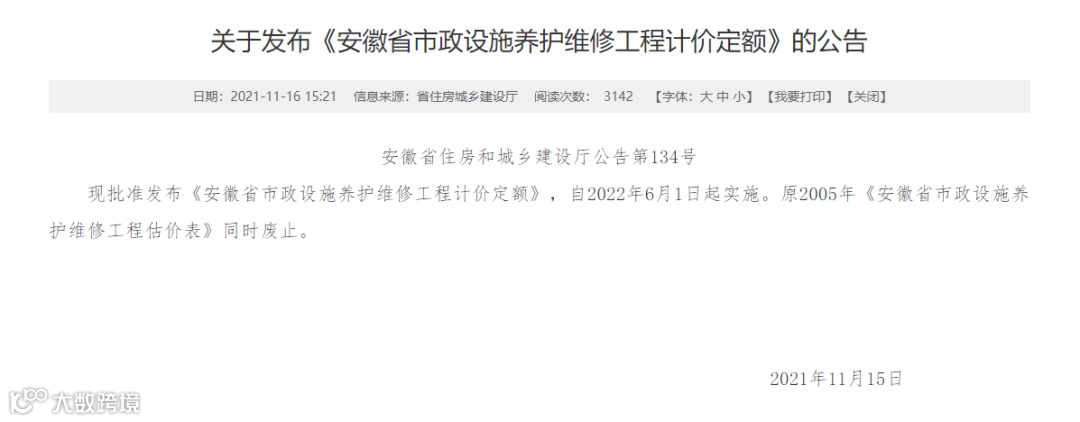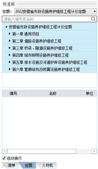 增加2022安徽省市政设施养护维修工程计价定额库。
