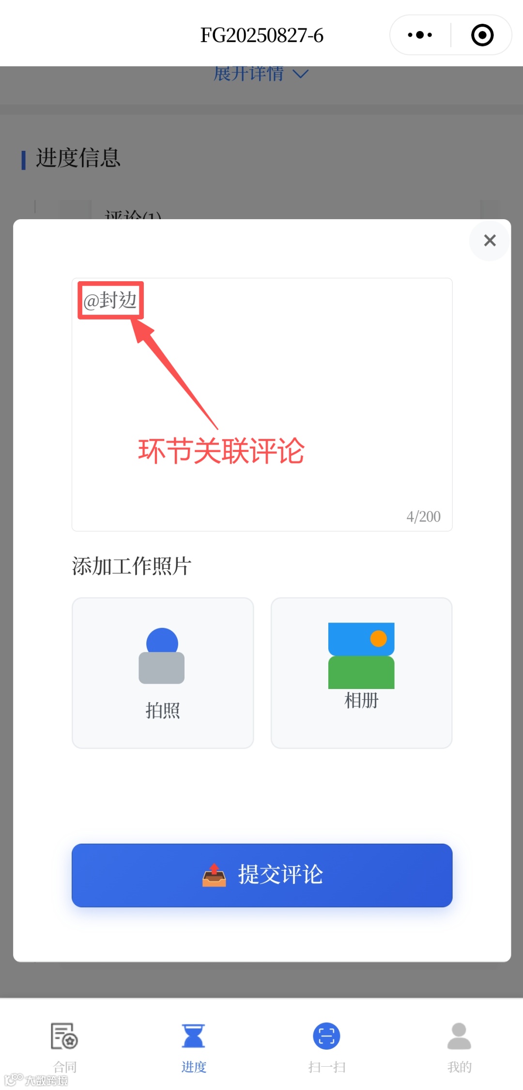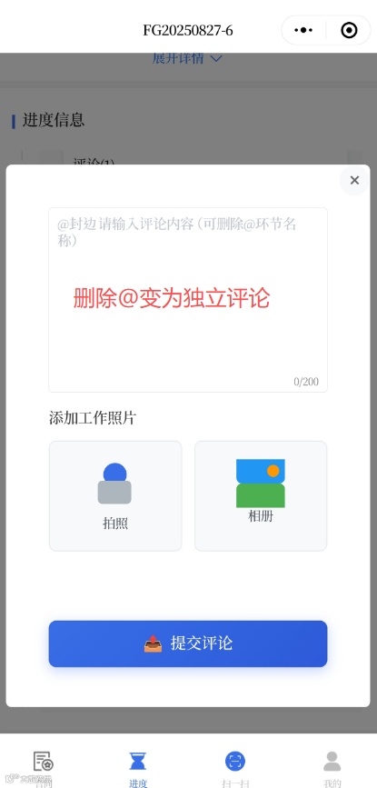 独立评论:不关联任何环节的通用评论,点击环节右边评论按钮后,删除@