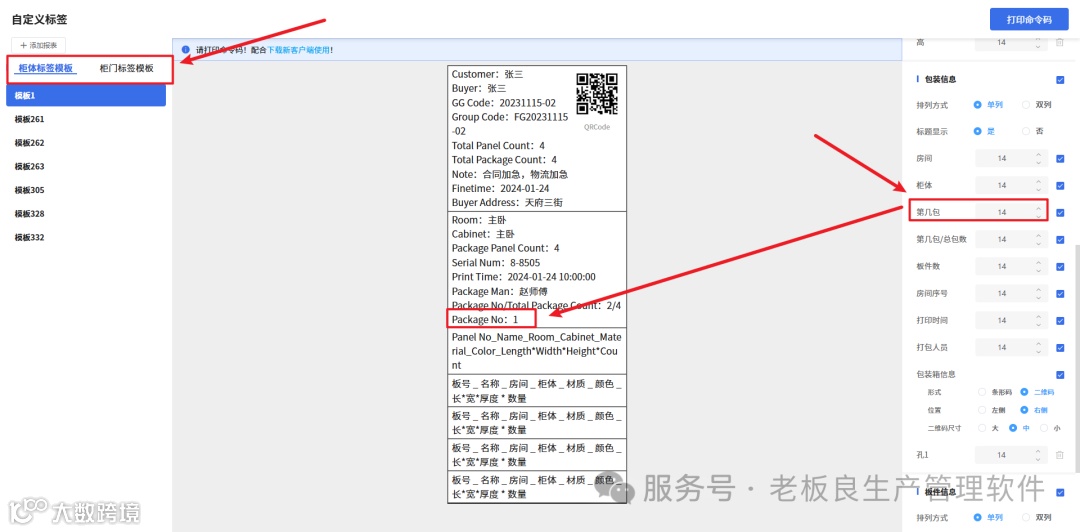 4、分拣打包-自定义标签,柜门、柜体标签模板增加“第几包”,中英文均支持