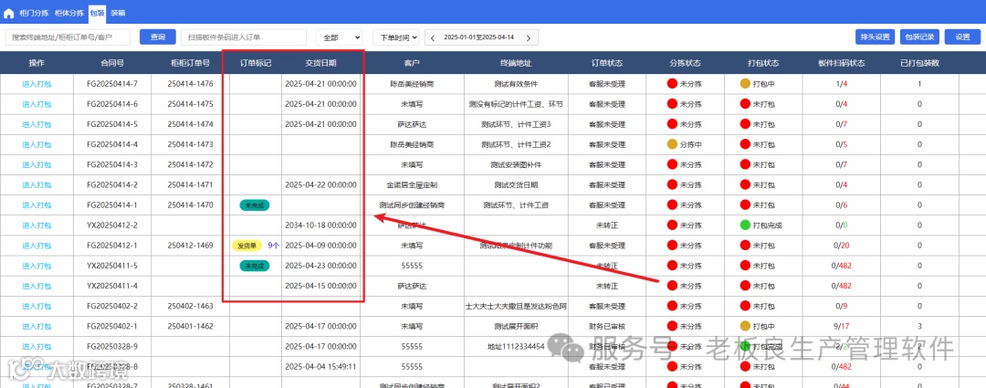 7、分拣打包-包装排头设置增加订单标记、交货日期,默认禁用
