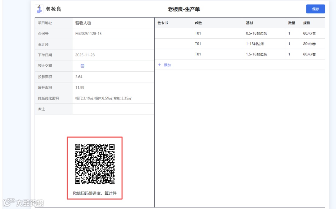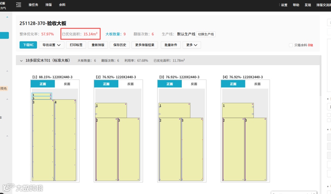 用户故事:【家具拆单工程师】希望有【排版实际面积】,解决工厂统计实际使用板材面积的问题