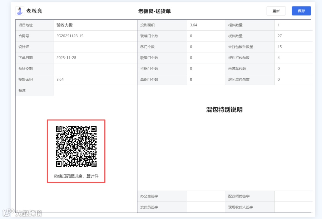 生产报表-生产单、送货单的小麻雀二维码替换为微信二维码,下面的文字为【微信扫码跟进度,算计件】