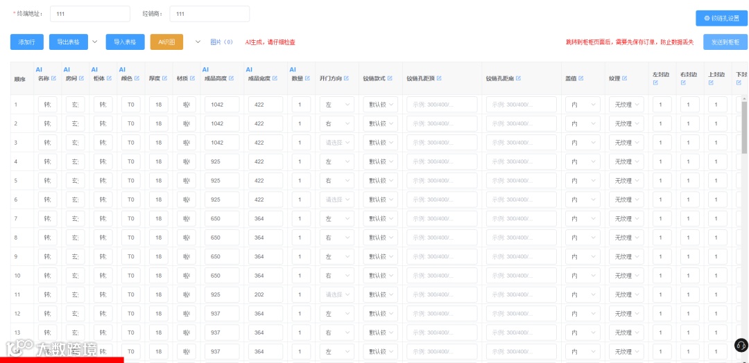 5、门板下单发送订单到柜柜的之后,当前页面数据不清空,还可以继续发送