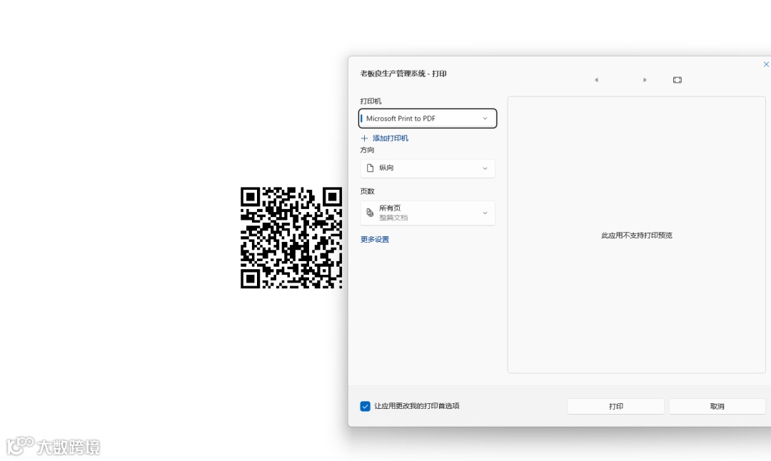 打印内容:只有一个二维码,二维码的信息是小程序扫合同码的一样的信息,小程序二维码;