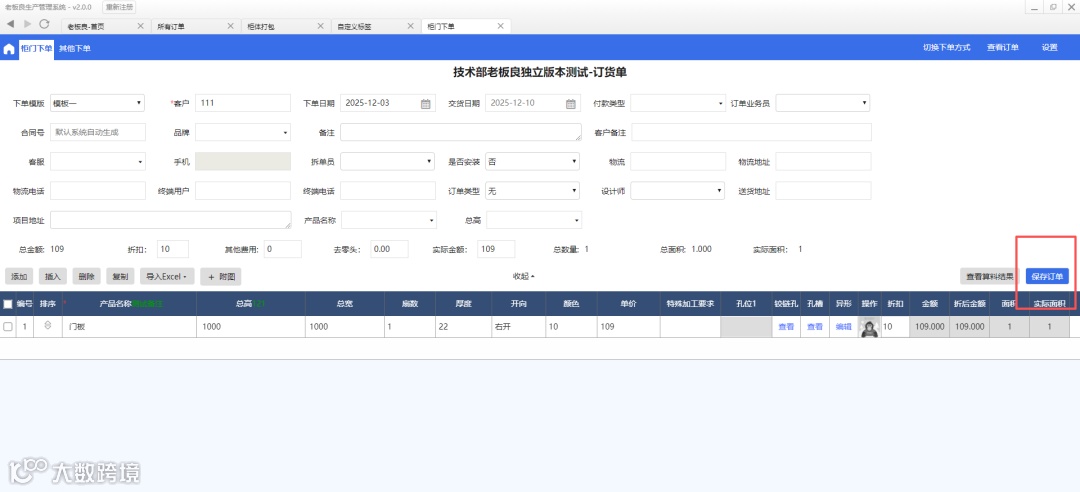 用户故事:【柜门生产工程师】希望门板下单可以连续下单,减少不必要的步骤,提高下单速度
