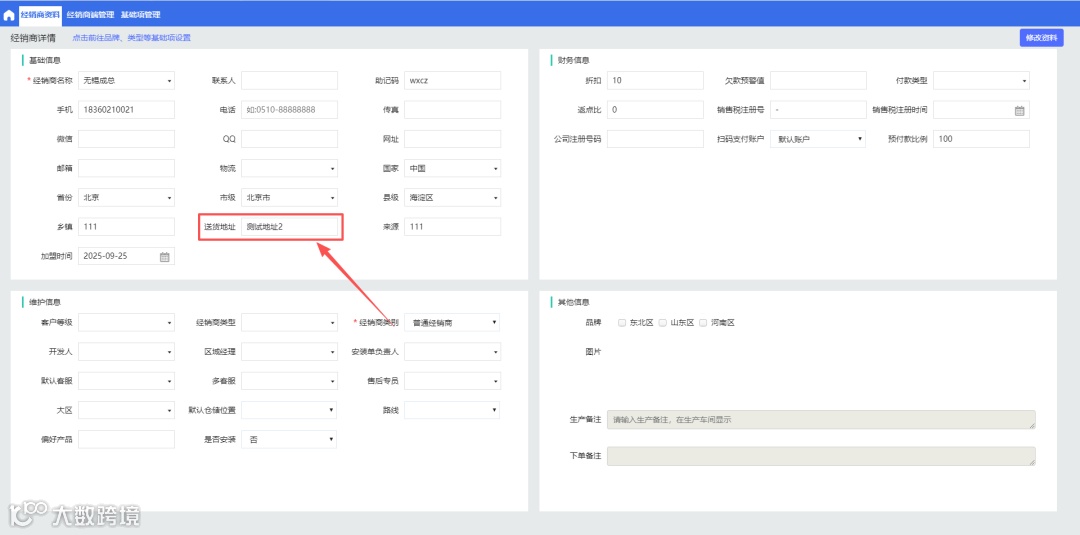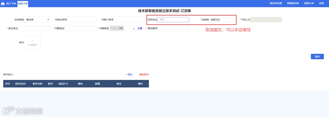 4、项目地址、经销商取消置灰,可以手动填写项目地址,可选择经销商