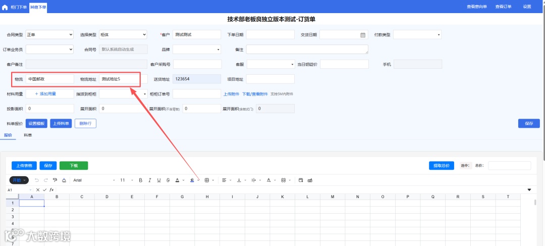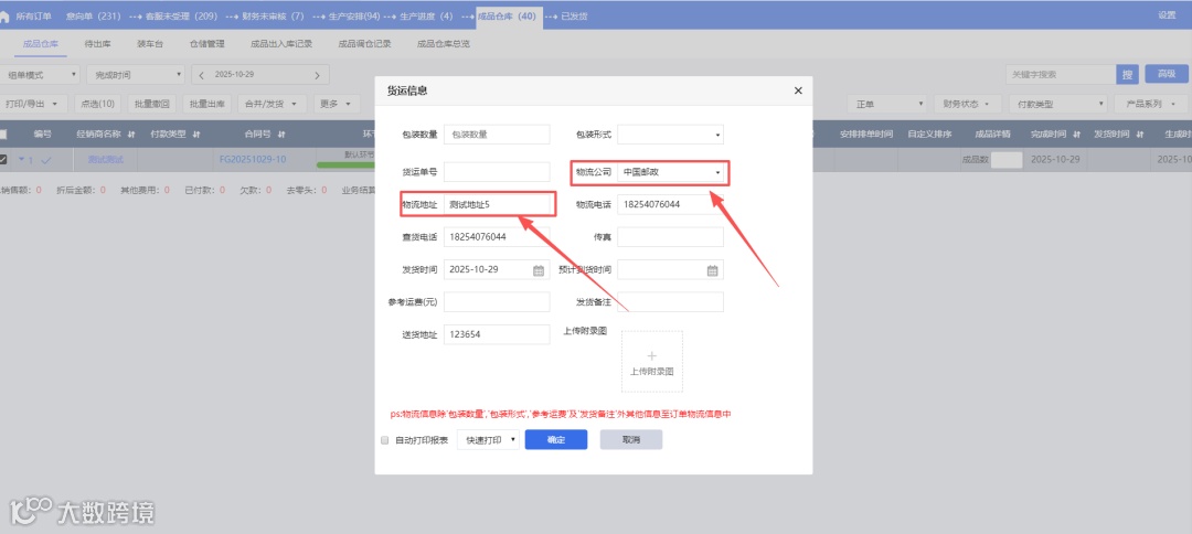 3、回传物流到合并发货的物流公司处,未做修改则保持当前,修改后显示最新的物流