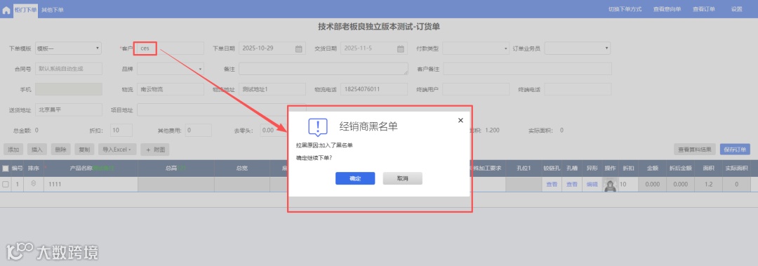 3、柜门下单,加入黑名单的经销商下单时增加提示弹窗