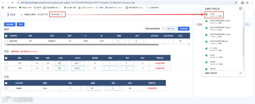2、同一单号合并显示,入库包数、入库时间、备注根据委外单号合并显示