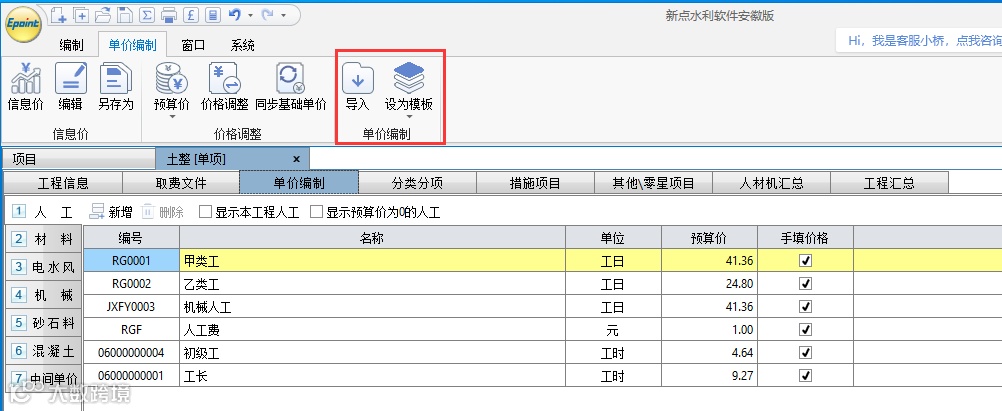 1)人材机价格随着制作工程的不断添加,可通过导出导入模板功能,将库中价格引用,提高制作工程效率,复用性强。