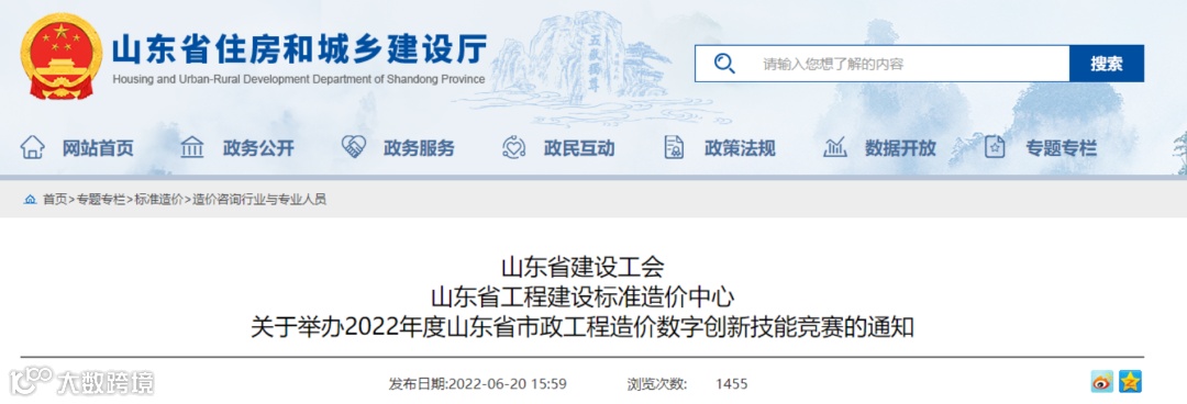 为弘扬新时代工匠精神,提高全省工程造价行业从业人员技能水平,加强行业人才队伍建设,按照省总工会劳动和技能竞赛部署安排,省建设工会、省工程建设标准造价中心决定举办2022年度山东省市政工程造价数字创新技能竞赛(以下简称“竞赛”)。现将有关事项通知如下:
